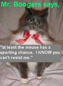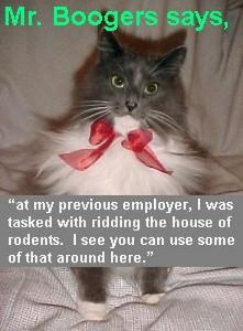 | During a very stressful October, Mister Boogers retired as our unofficial mascot. We had been through many rounds of layoffs. Clearly it had taken a toll on our beloved feline. He issued a final Press Release and departed for green pastures. | |||
